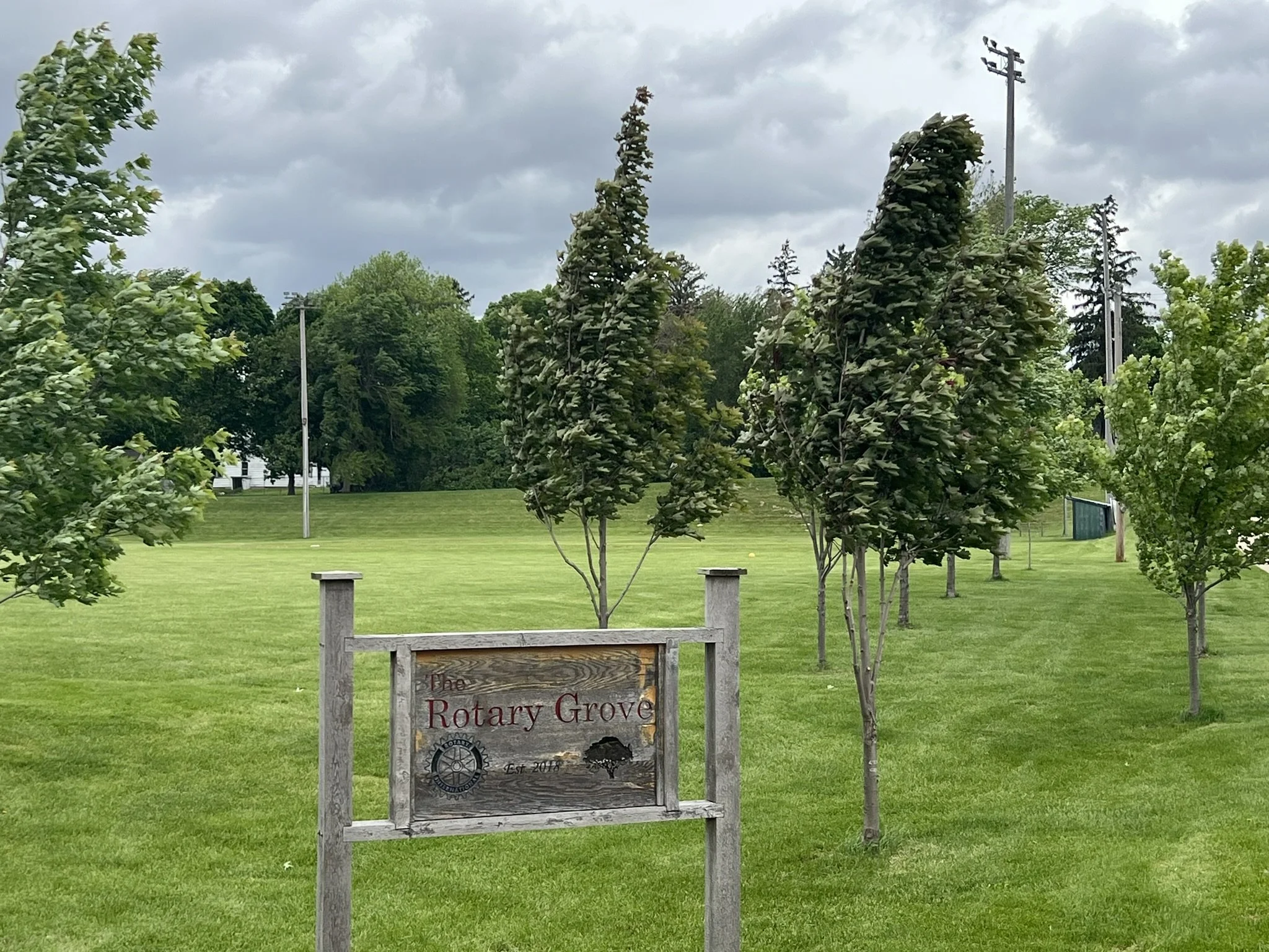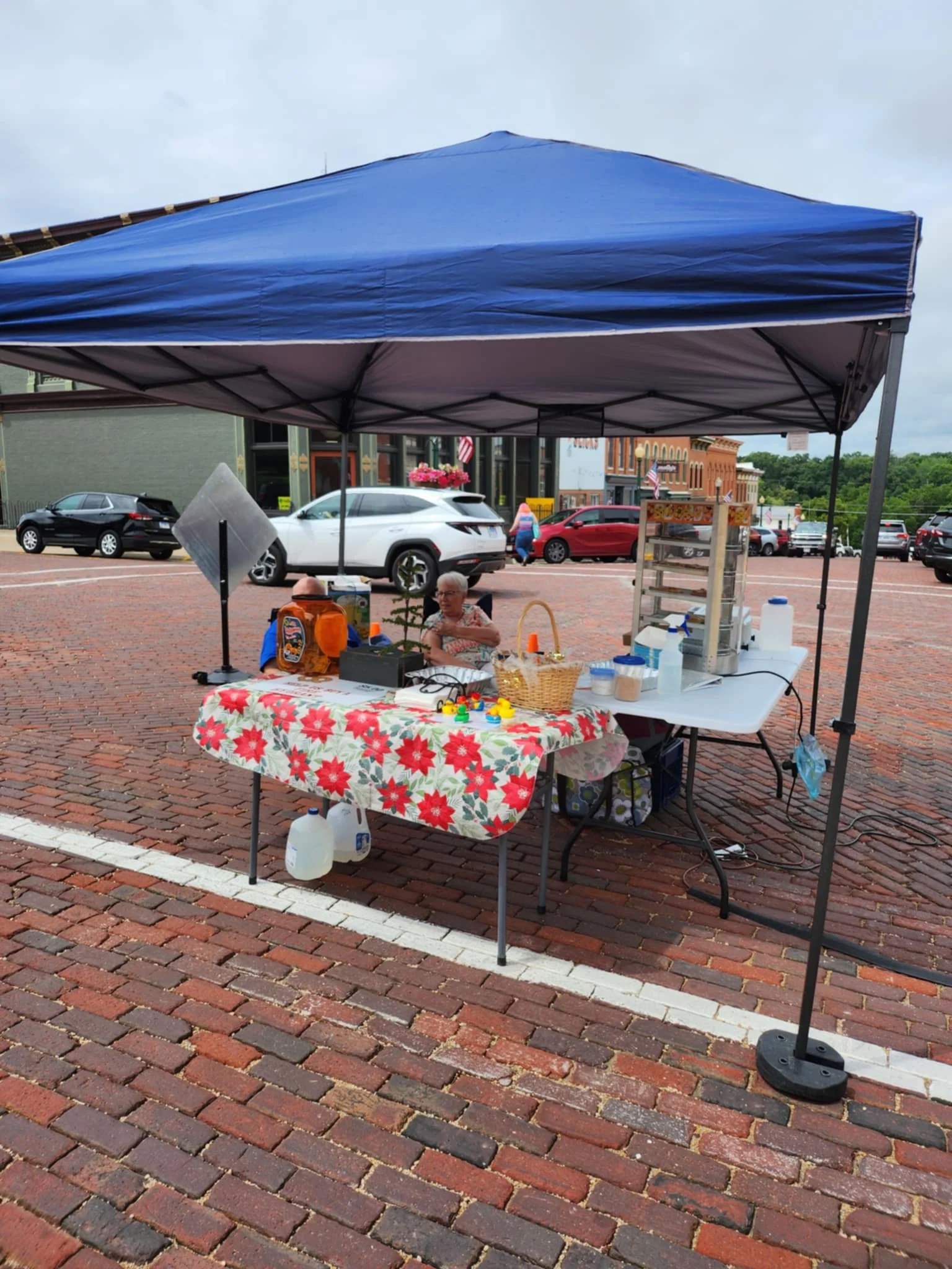 Club members work at the Rotary sponsored booth at the Saturday morning Mt. Carroll Farmer’s Market selling hot dogs, pretzels or other items. All profits go to support Rotary’s activities in the area and around the world.